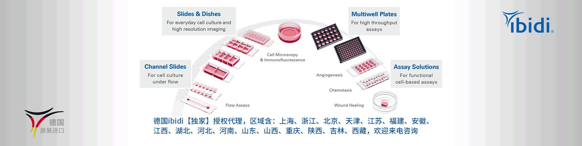 ibidi在細(xì)胞顯微成像領(lǐng)域做出了重大突破,創(chuàng)新細(xì)胞鏡檢解決方案。公司產(chǎn)品囊括范圍較廣,即可實(shí)現(xiàn)傳統(tǒng)細(xì)胞培養(yǎng),也可完成復(fù)雜的細(xì)胞實(shí)驗(yàn)(包括血管生成、細(xì)胞趨化、傷口愈合及細(xì)胞灌流等實(shí)驗(yàn))。